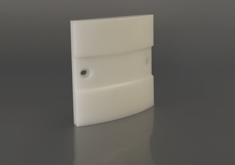 Il pattino è stato ricavato da un blocco di nylon colato mediante fresatura con asportazione del truciolo, garantendo una perfetta compatibilità con il sistema preesistente. L’impiego di macchinari CNC di ultima generazione ci ha permesso di ottenere tolleranze ristrette e un’elevata qualità superficiale, riducendo l’attrito e l’usura durante il funzionamento.